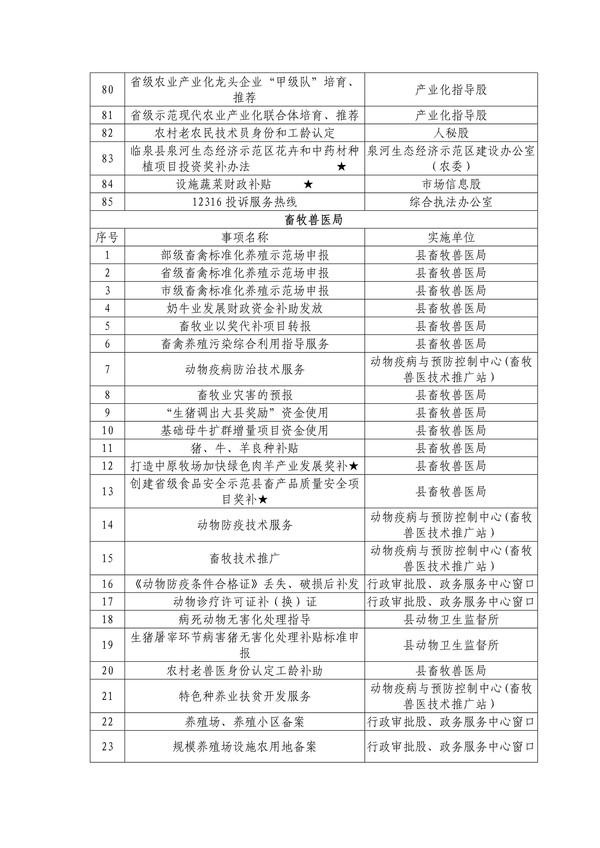 关于公布临泉县县乡两级公共服务清单目录(2017年本)的通知